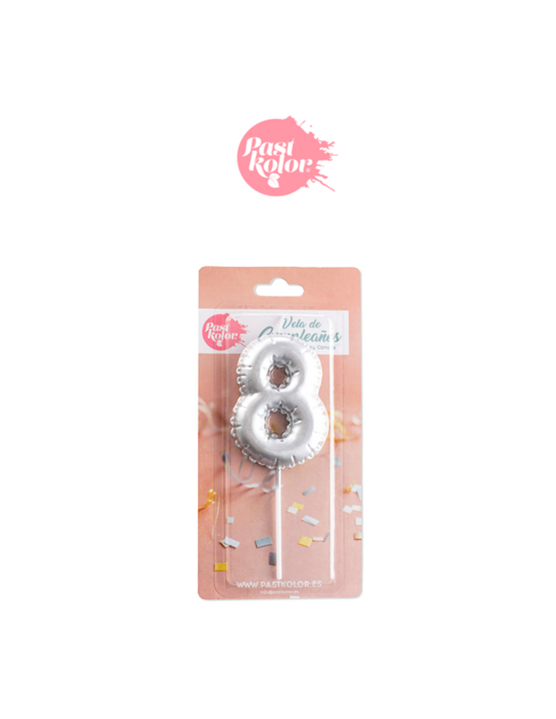 Vela de cumpleaños con forma de globo color plata, ideal para darle un toque elegante y original a los cumpleaños.