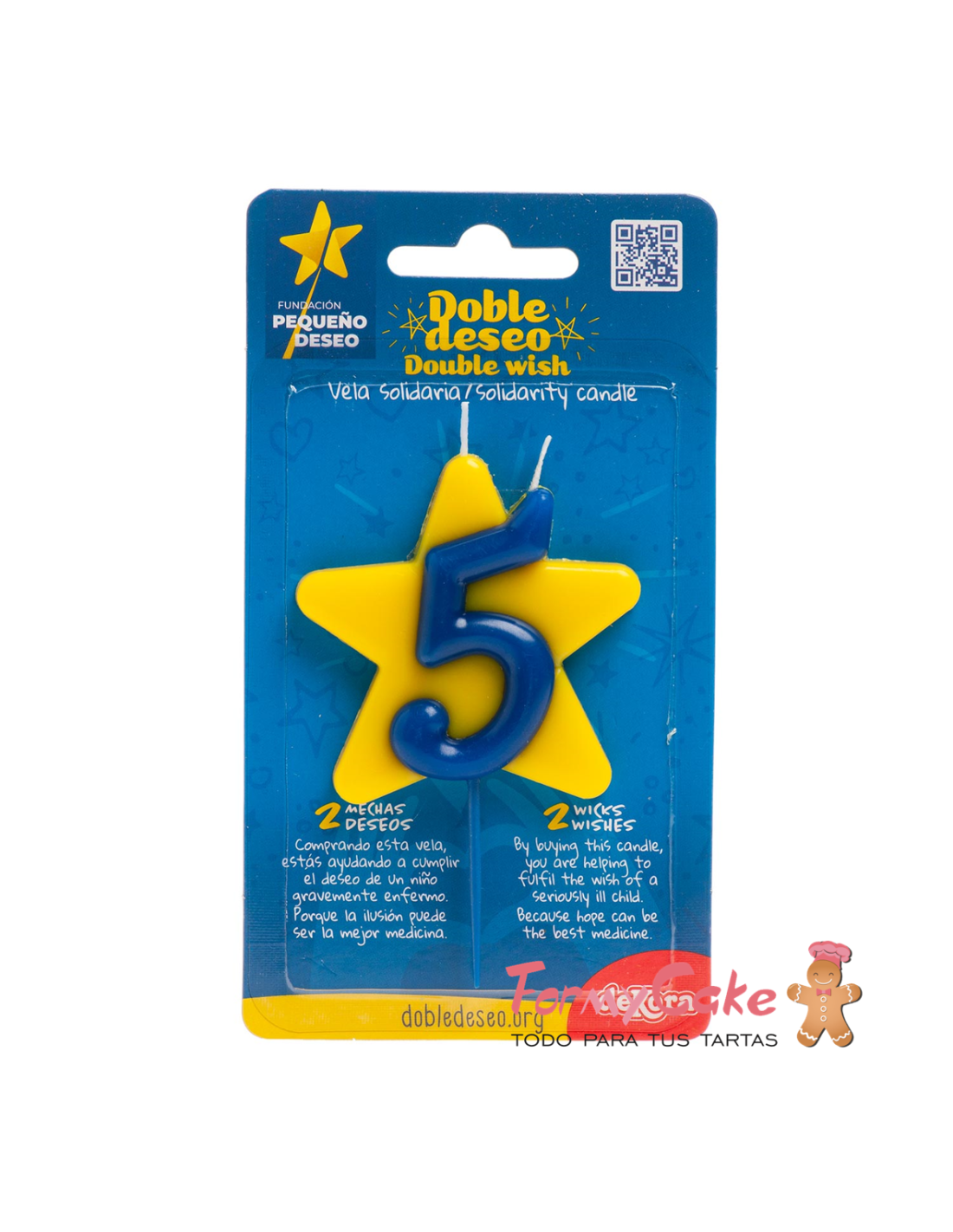 Vela Solidaria Doble Deseo Número 5 Dekora