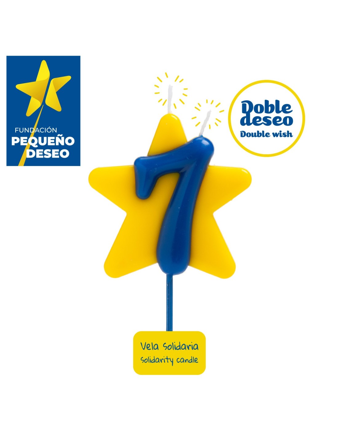 Velas solidorias Doble Deseo en forma de estrella con número con dos mechas para que pidas dos deseos. Estas velas colaboran con la Fundación Pequeño Deseo que trabaja para mejorar el estado anímico de niños con enfermedades graves a través del cumplimiento de sus deseos, con el objetivo de ayudarles a afrontar con más fuerza su tratamiento.