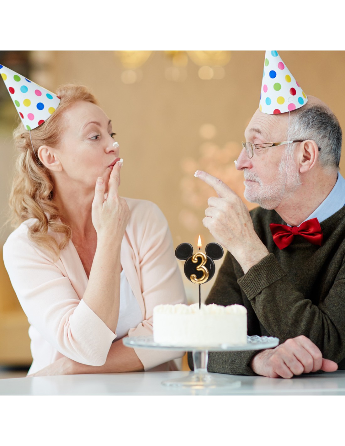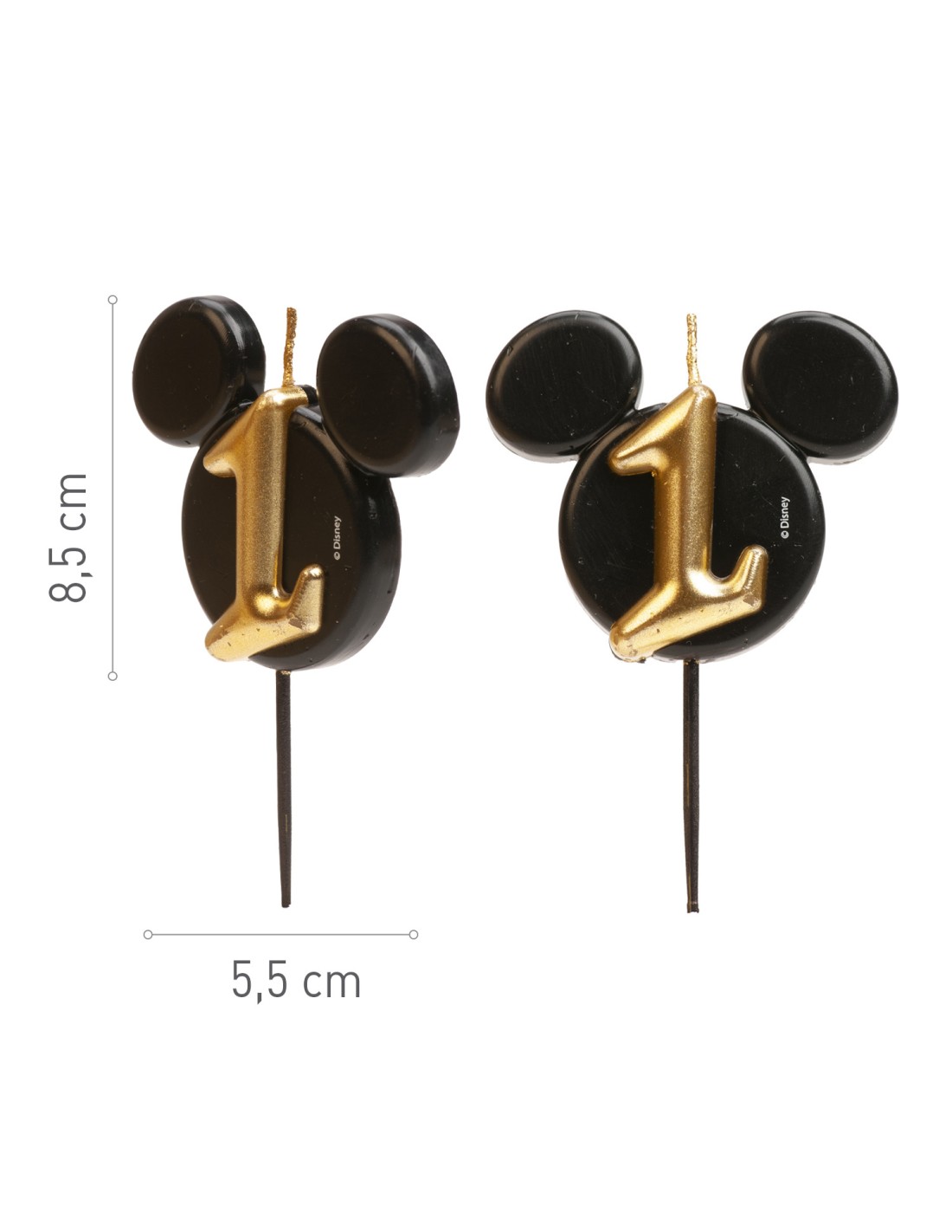 Decora tu tarta de cumpleaños con esta bonita vela negra de la silueta de Mickey que lleva un elegante número dorado.