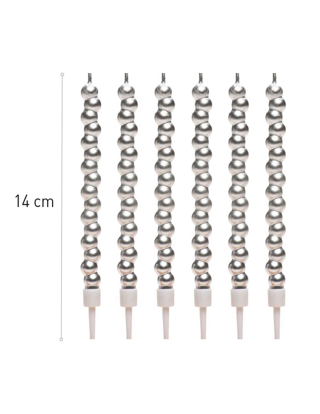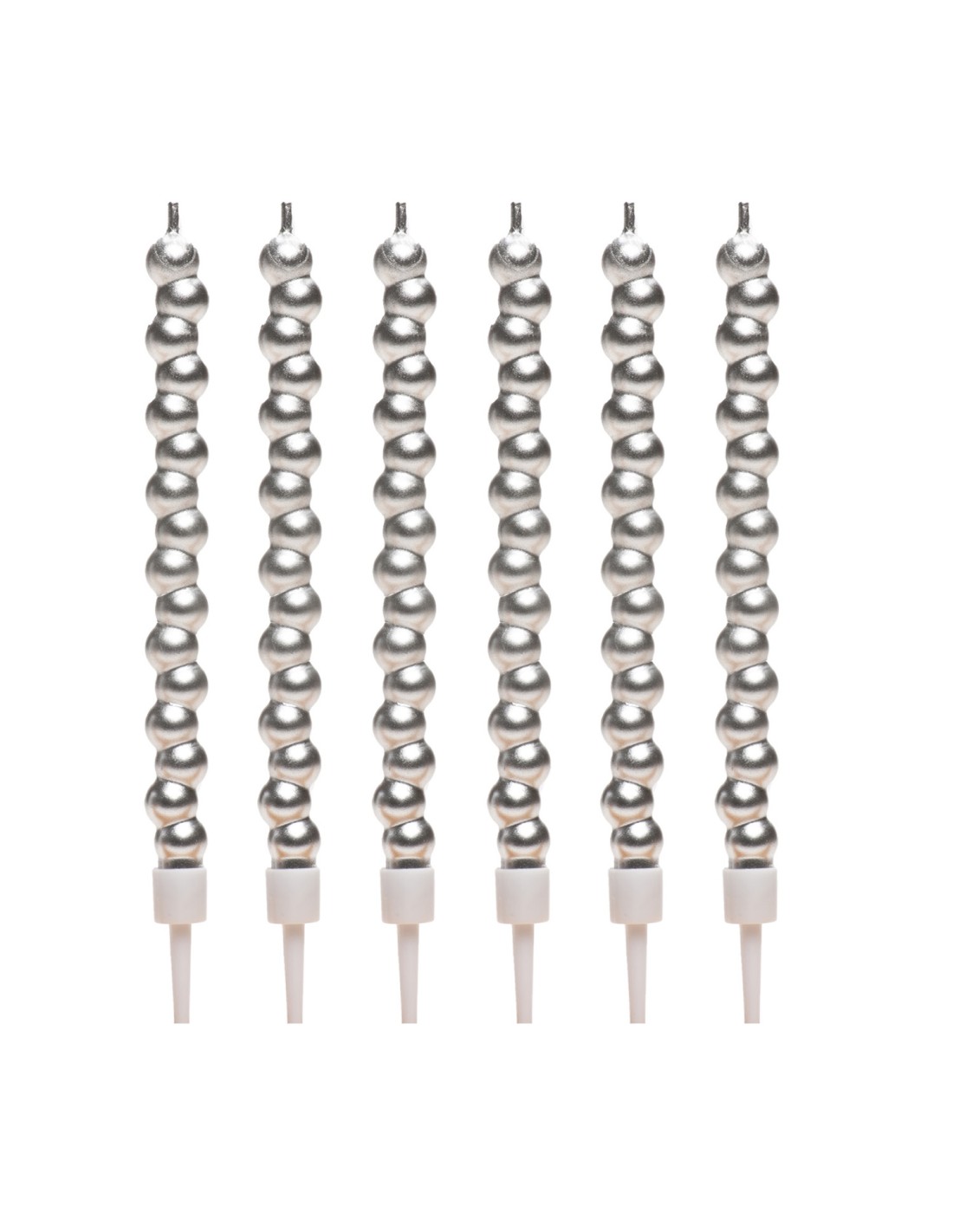 Elegantes velas torneadas en forma de burbujas plateadas, dale un toque de distinción a tus tartas con estas bonitas velas.