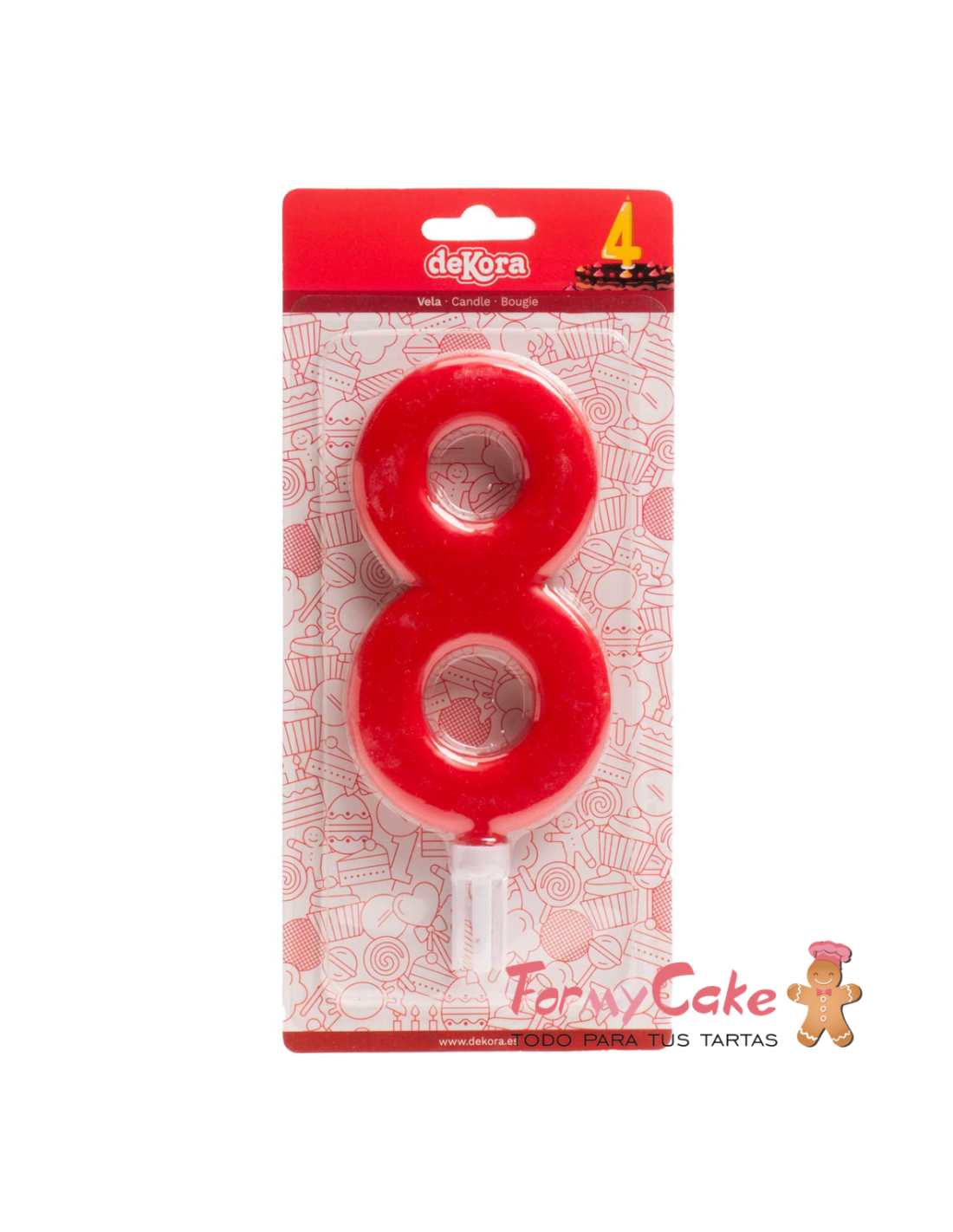 Vela gigante del número 8 para coronar tu tarta. Estupenda para la decoración de una tarta de fondant o fría.