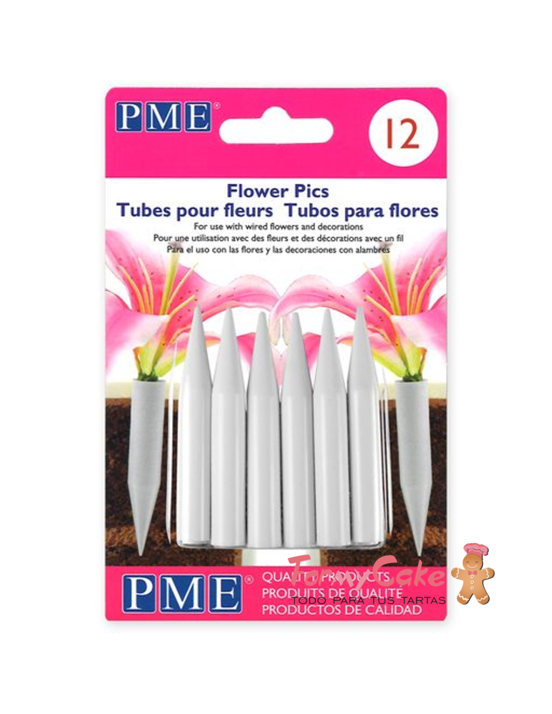Los Tubos para Flores de PME son ideales para decoraciones alambradas comestibles y no comestibles. También puedes utilizarlos para decorar con flores naturales. Es la manera perfecta de asegurar cualquier elemento alambrado y las formas recortadas alambradas en pasteles, cupcakes y postres para celebraciones decorados.