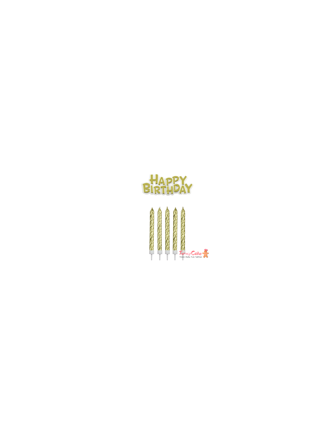 Este set de velas doradas de PME (Candles & Happy Birthday gold) son perfectas para añadir un toque especial a tus tartas de cumpleaños. El set contiene además de una vela con la palabra Happy Birthday, unas velas rectas.