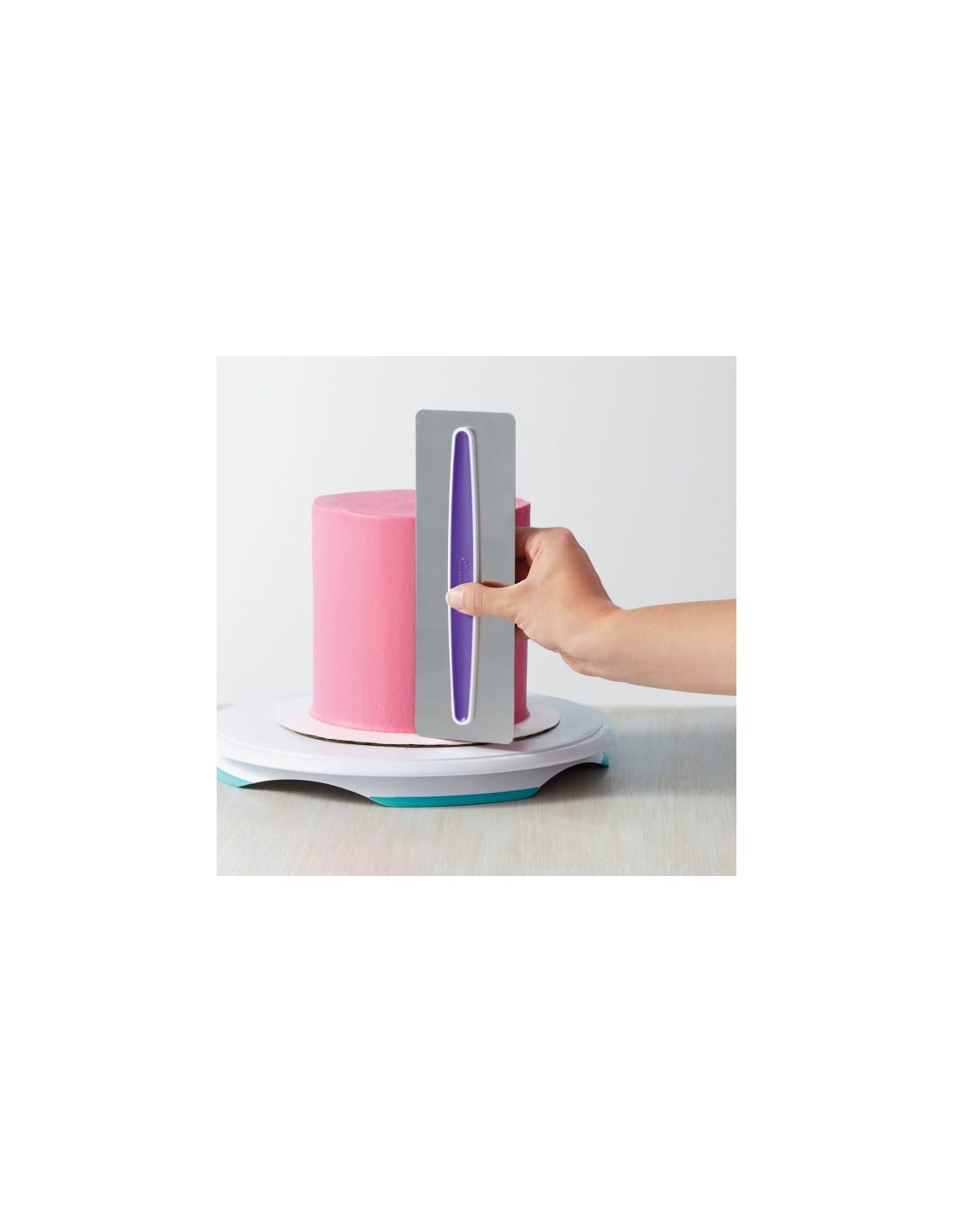 Este alisador de acero inoxidable de Wilton le ayuda a crear tartas perfectamente lisas.